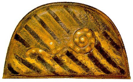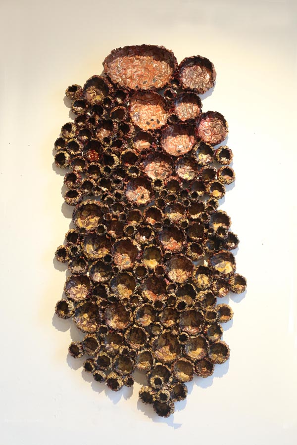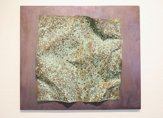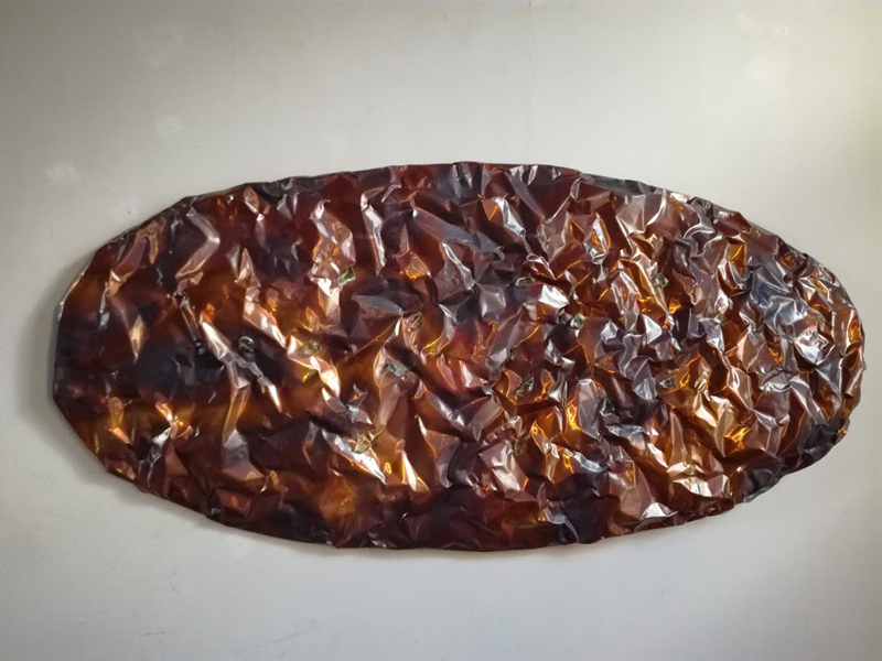 Summer scarf, copper, repoussé, dyed brass behind