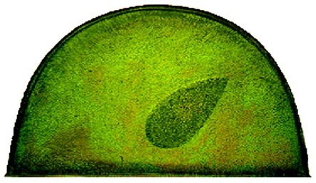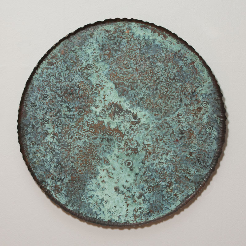 Kesähuivi, kupari, pakotustyö, alla värjätty messinkilevy