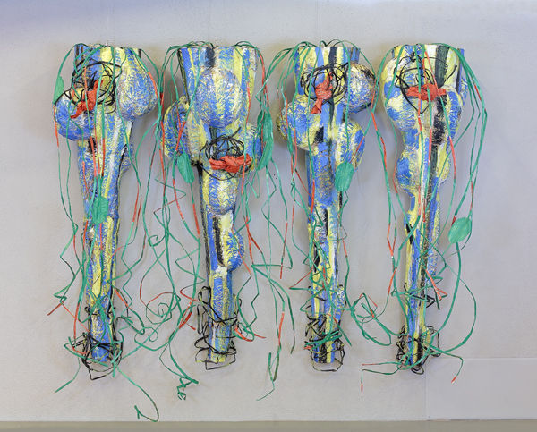 Vasemman jalan hermo, teräsverkko, teräslanka, voimapaperi, akryyliväri, värikynä