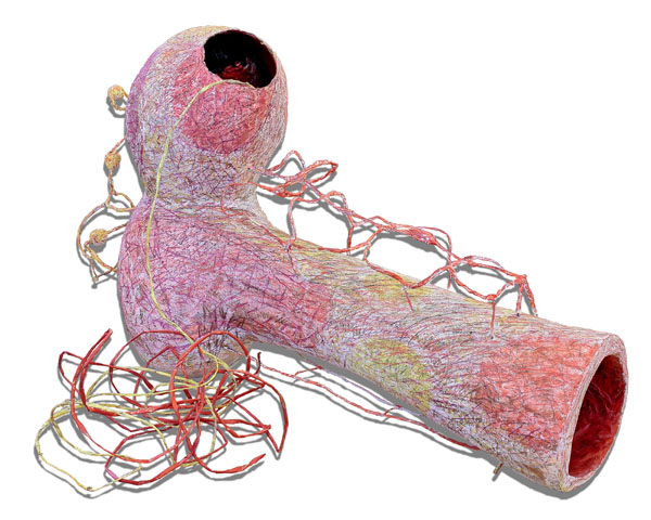Left leg nerve,steel mesh, iron string, kraft paper, acrylic colour