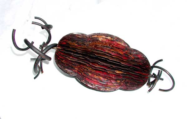 Moth, copper, repoussé, aluminium below