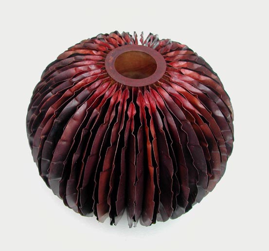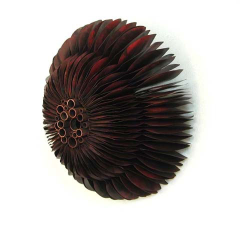 Red flower, copper, repoussé