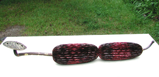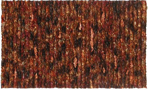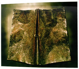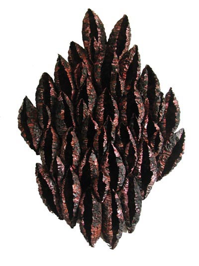 Summer scarf, copper, repoussé, dyed brass behind
