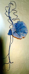 Kukka ja vahvat juuret, teräslanka, voimapaperi ja akryyliväri