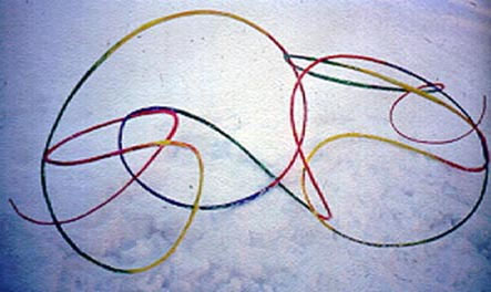 Jump, iron string, kraft paper, acrylic colour