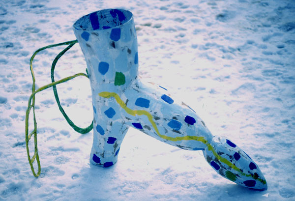 The earth wakes up, iron net and -string, kraft paper, acrylic colour